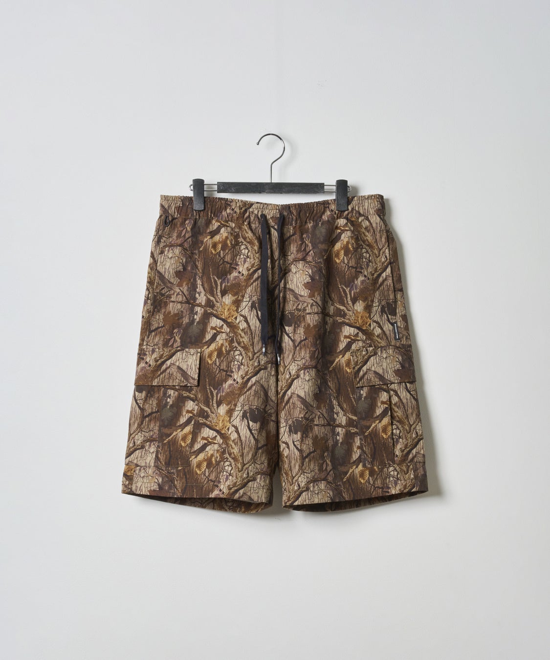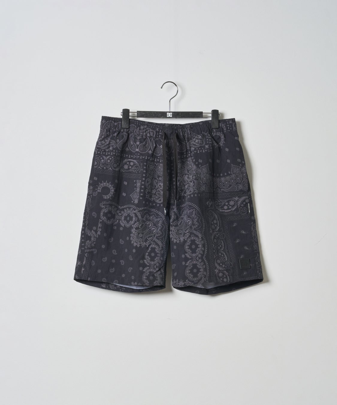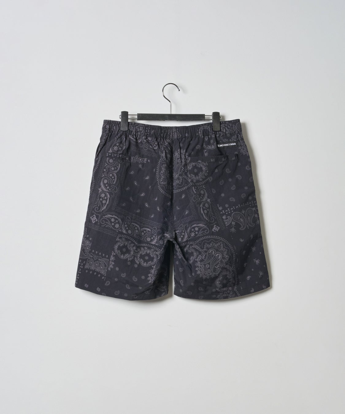 パフォーマンス力抜群のワイドショーツは、と吸水速乾性に優れたナイロンタッサー素材を採用し、水陸両用で活躍します。ポケット内は通気性の高いメッシュ仕様で、内側にキーフックを装備。ウエストはゴムとドローコード仕様でフィット感の調整もスムーズ。軽やかな穿き心地で、暑い夏のアクティビティからデイリーユースまで幅広く対応します。 BEIGE CAMO、BANDANAは上記シャツ(26 WORKERS SHIRT SS)とセットアップで着用可能です。