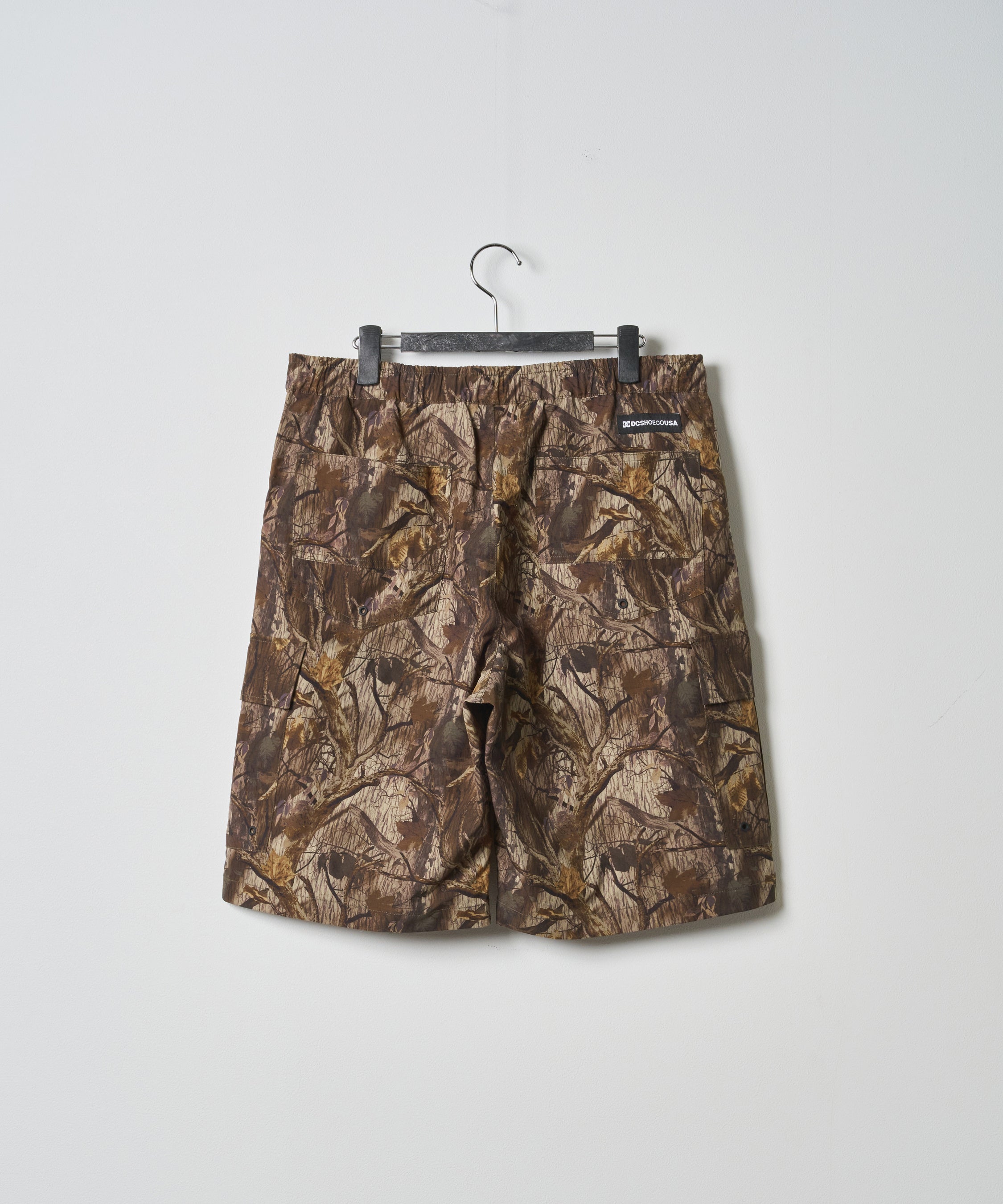 ハイパフォーマンスを発揮するワイドカーゴショーツ。伸縮性・吸水速乾性・塩素対応を備えたポリエステルリップストップ素材を採用し、水陸両用で着用可能です。ポケット内は通気性の高いメッシュ仕様で、キーフックや水抜き穴を装備。アクティブなシーンでも快適さをキープ。ウエストはゴムとドローコード仕様でフィット感の調整もスムーズ。暑い夏のアクティビティからタウンユースまで幅広く対応できるスケートショーツです。 BEIGE CAMOとBANDANAは 上記シャツ(26 WORKERS SHIRT SS)とセットアップで着用可能です。