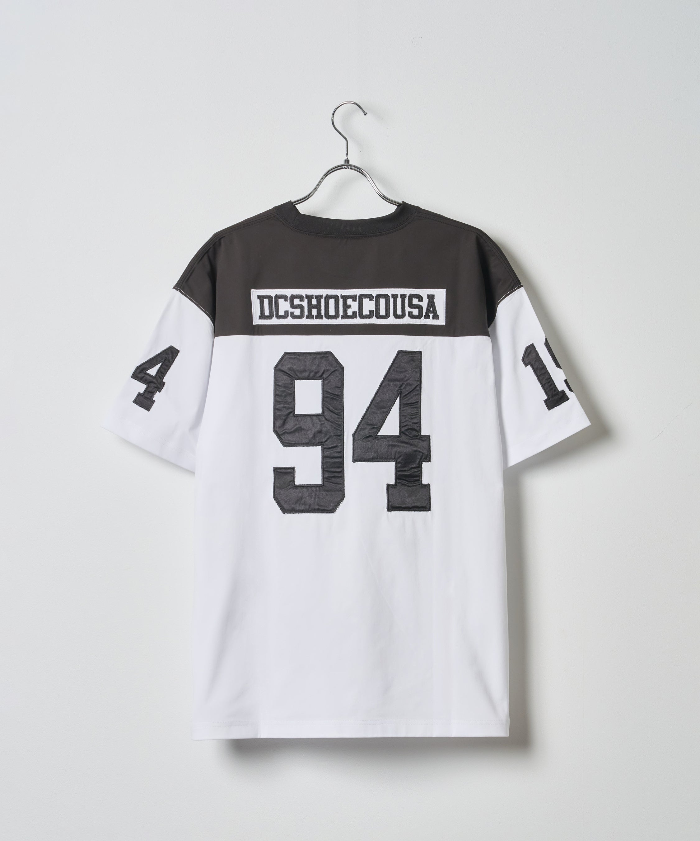 DCSHOCOロゴをドットでプリントした、着まわしやすいデザインのハイパフォーマンス半袖Tシャツ。吸水速乾性・UPF50+のUVプロテクション・接触冷感効果・ストレッチ性を備えたポリエステルナイロン素材を使用。水陸両用で着用可能。