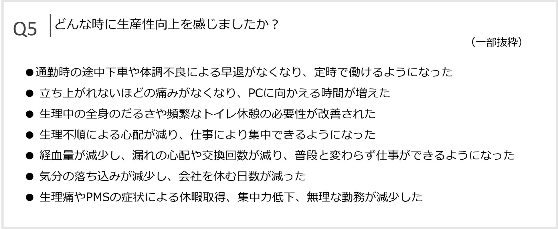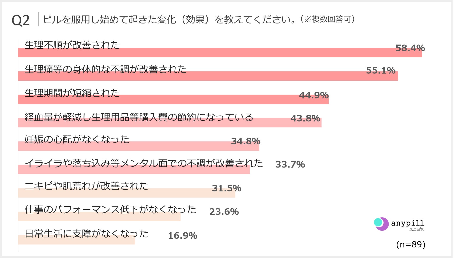 ・具体的にはピルを服用し始めてから「生理不順」や「生理痛改善」等の効果を実感している