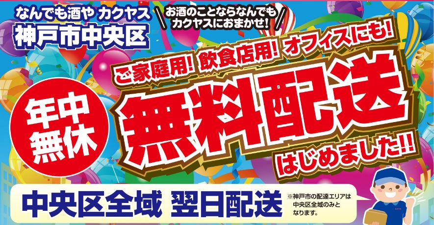 「1本から、ピンポーン!」のカクヤス、兵庫県神戸市中央区エリア ご家庭向け配達サービスをスタート