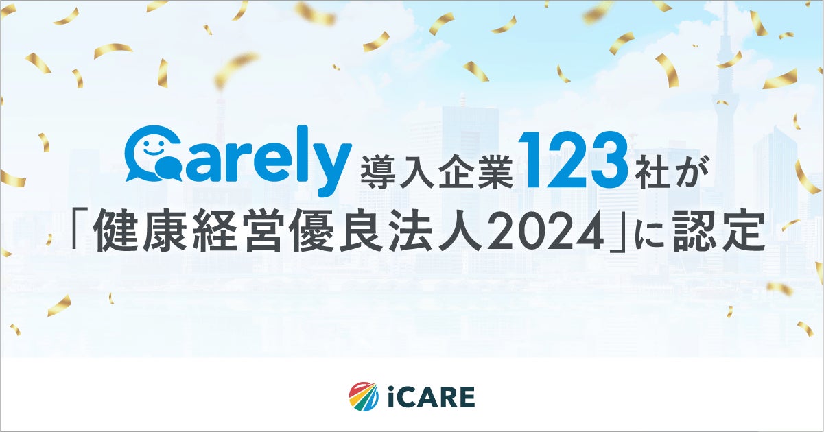 株式会社iCARE(所在地:東京都渋谷区、代表取締役CEO:山田洋太、以下当社)が開発・提供する健康管理ソリューションサービス「Carely(ケアリィ)」の導入企業のうち、123社が「健康経営優良法人2024」に認定されたことをお知らせいたします。