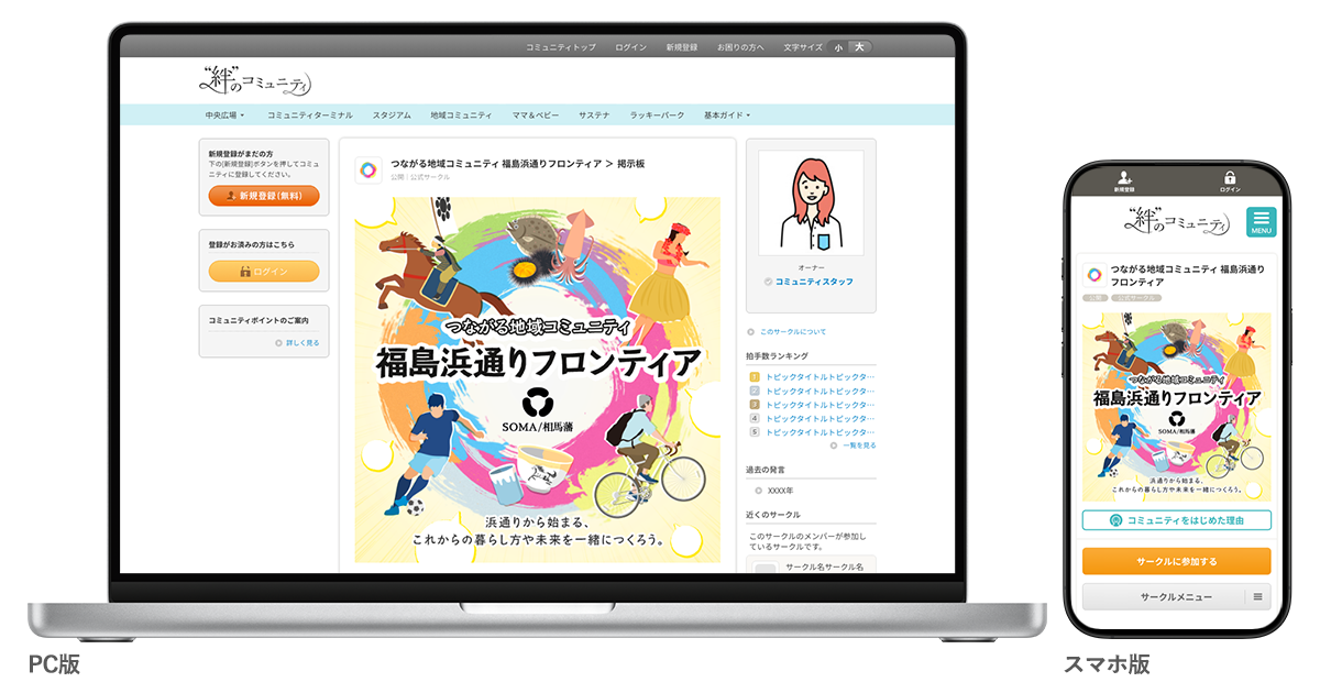 一般社団法人SOMA(所在地:福島県双葉郡、共同代表:相馬 行胤、高橋 大就)と、クオン株式会社(本社:東京都港区、代表取締役:武田 隆)は、2026年3月11日、地域の未来を共に描くオンライン共創コミュニティ「つながる地域コミュニティ 福島浜通りフロンティア supported by SOMA(相馬藩)」を開設いたしました。