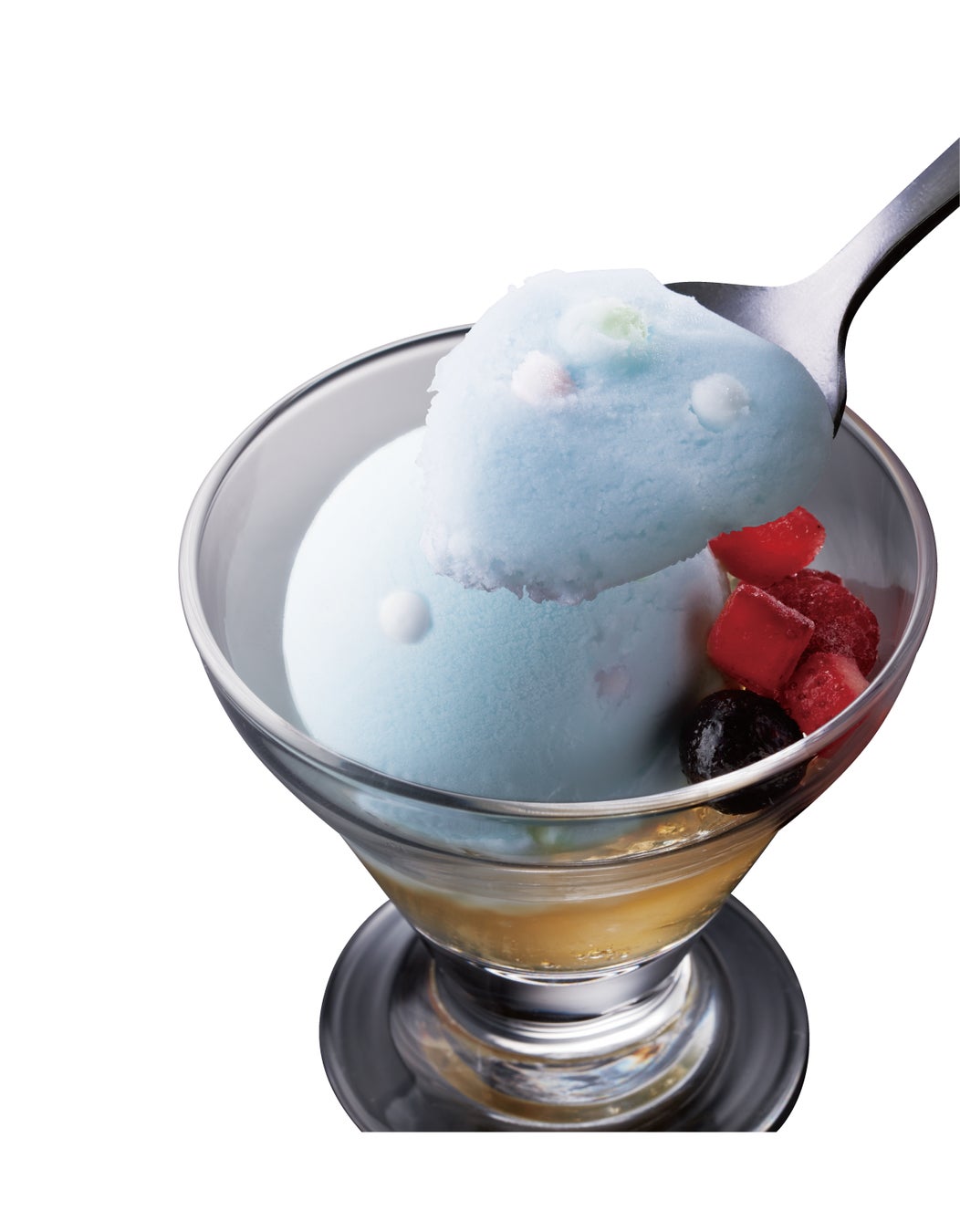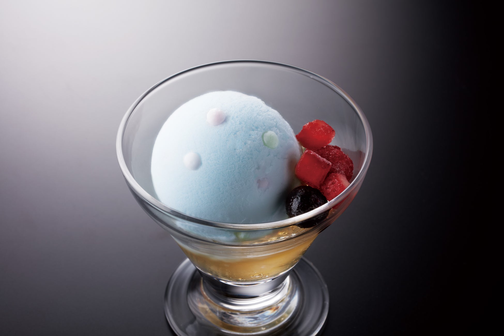 甘めのゼリーの上に「ラムネシャーベット」を乗せ、ベリーの酸味がプラスされています。