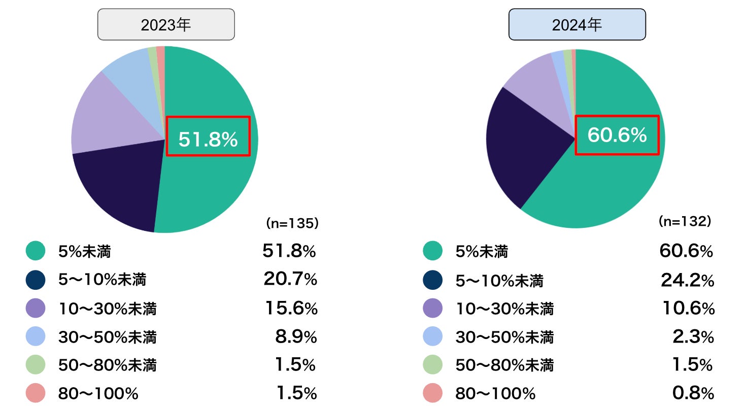 「暗号資産」と答えた方へ【Q暗号資産への投資に充てた資産は、資産全体の何%になりますか?】では、実際に暗号資産へ資産運用に充てた金額は下記の通りになりました。今年は暗号資産への投資比率が60.6%となり、2023年より9%近く上昇していることから、暗号資産の価格上昇が投資を後押しした結果となりました。