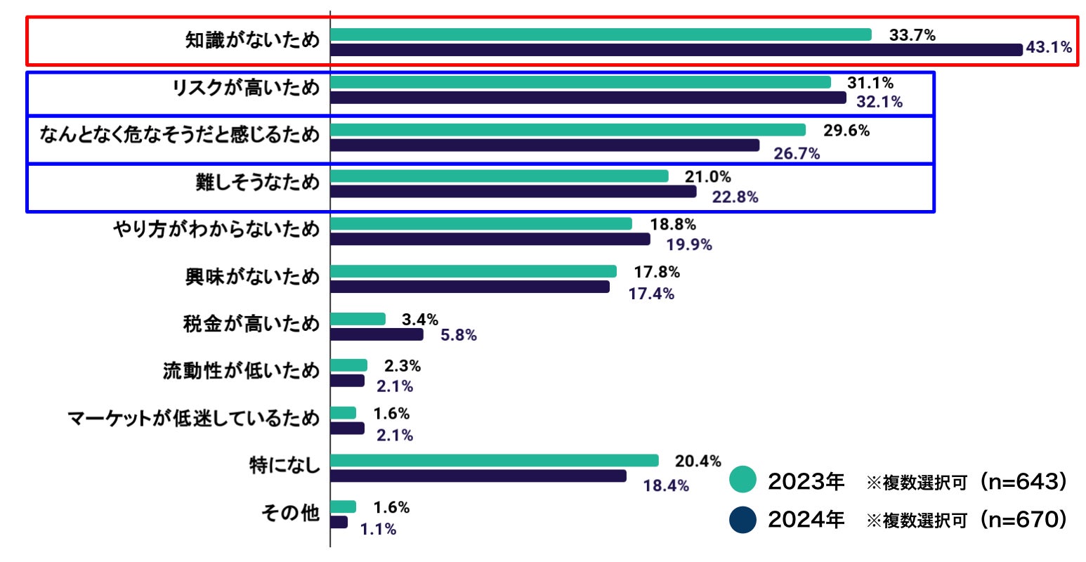 Q7. 暗号資産に投資をしない理由は、今年も「知識がないため」が最多回答