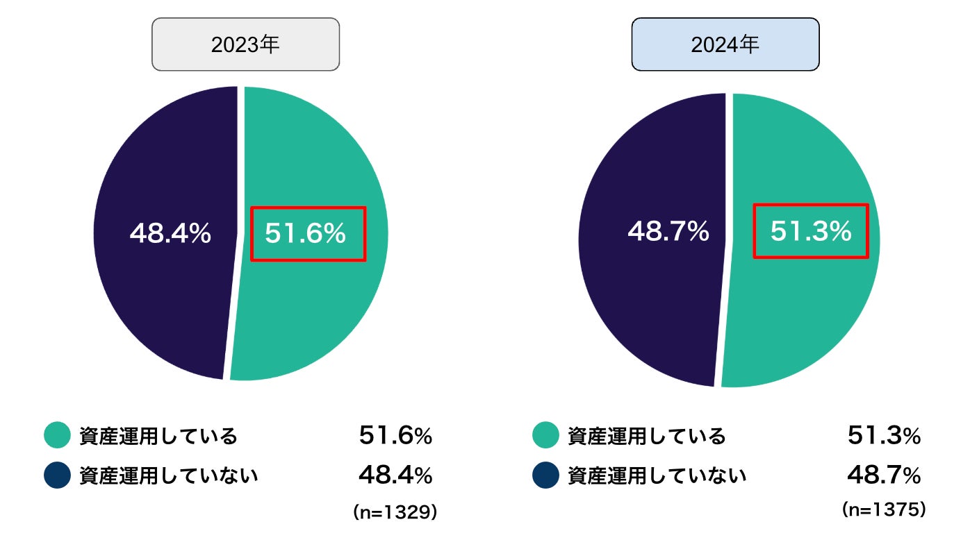 Q1.「資産運用している」方は2023年と変わらず約5割でほぼ横ばい