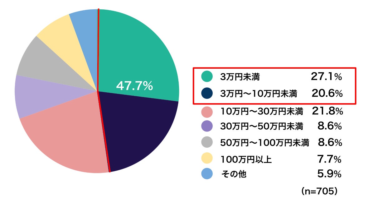 「資産運用している」と答えた方へ【2025年中に、暗号資産へどれくらい投資を予定していますか?】では、「3万円未満」「3万円〜10万円未満」と回答した方が約半数の47.7%となっており、小口投資が多くを占めていることが見受けられる結果となりました。