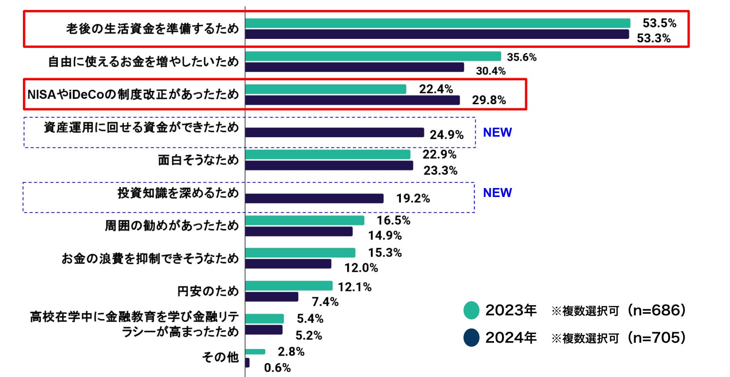 Q3. 「老後の生活資金を準備するため」が2023年と変わらず断然トップ