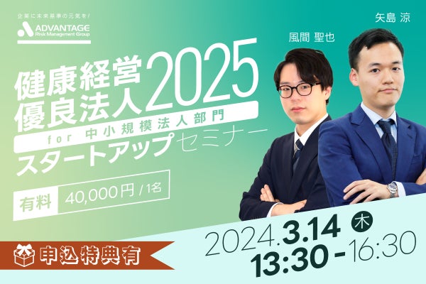 株式会社アドバンテッジリスクマネジメントは、健康経営を推進するご担当者を対象としたWebセミナー「健康経営優良法人2025スタートアップセミナー」を開催いたします。