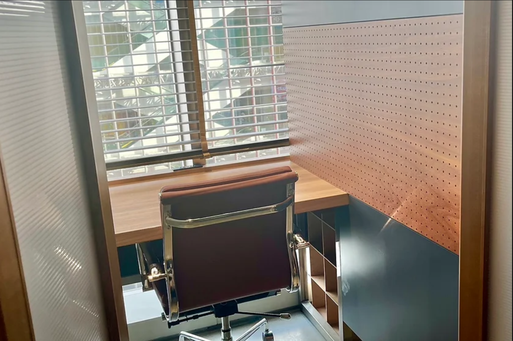 1名専用ブース席は窓から注ぐ太陽光にあたりながら集中して作業ができるスペースです。