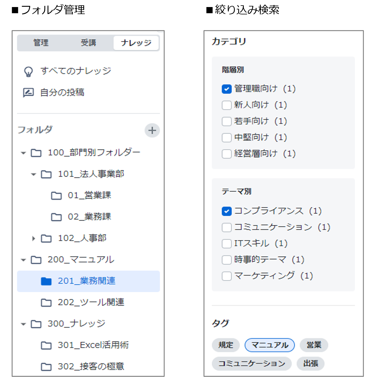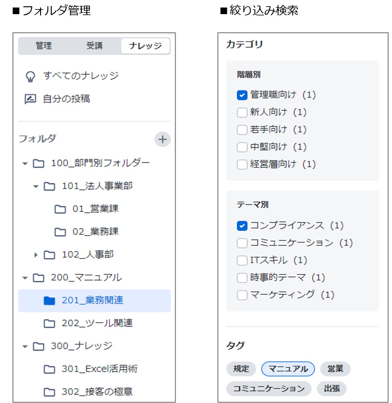 •キーワードや階層別、テーマ別で絞り込み検索ができる。