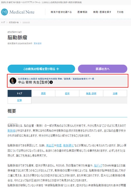 その後、私にも脳動脈瘤など疾患の監修記事のお話をいただいたり、今日まで色んな取り組みを一緒に行わせていただきました。