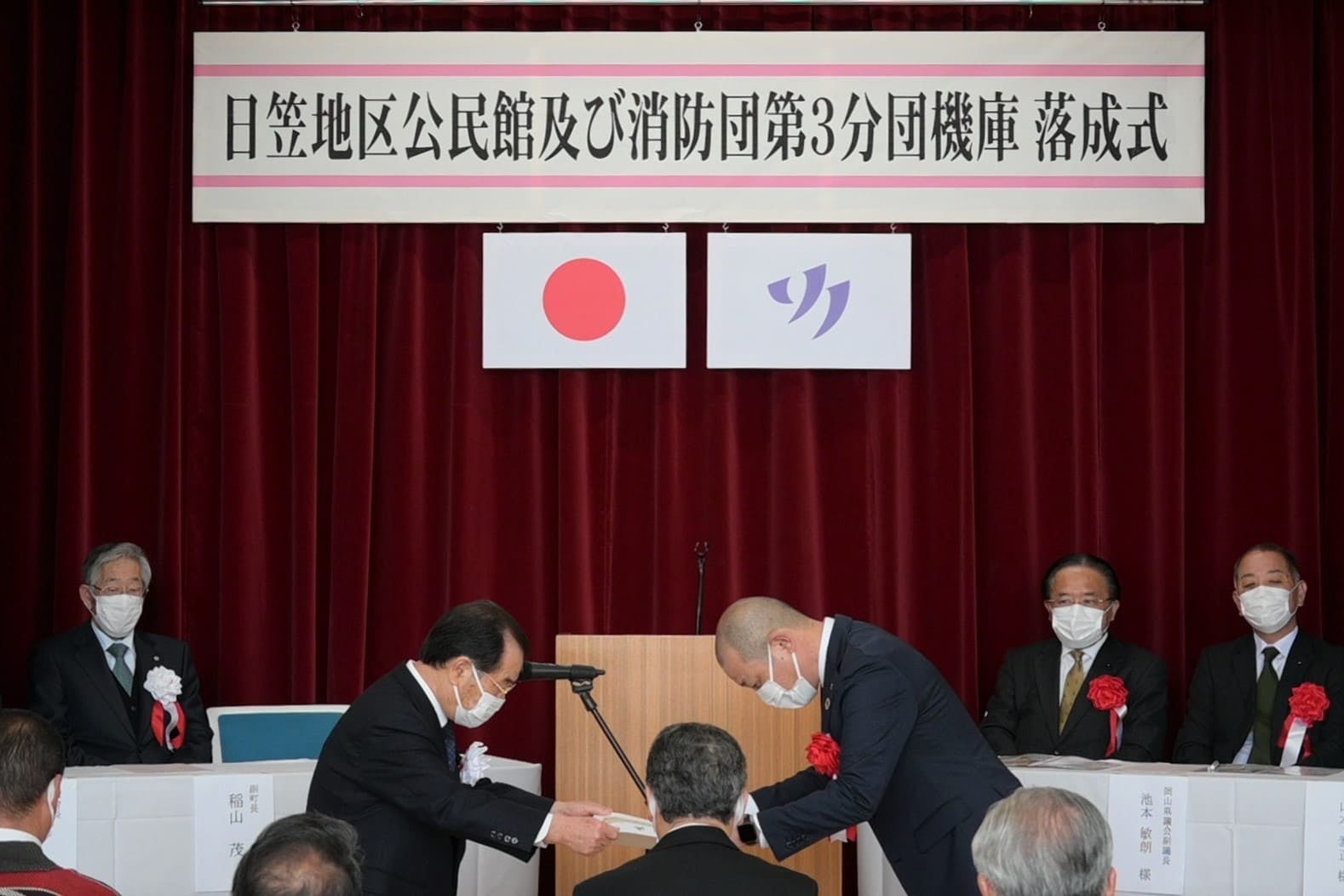 なお、こちらの『日笠地区公民館』と『消防団第3分団機庫』はライフデザイン・カバヤにとって初めての公共工事となります。