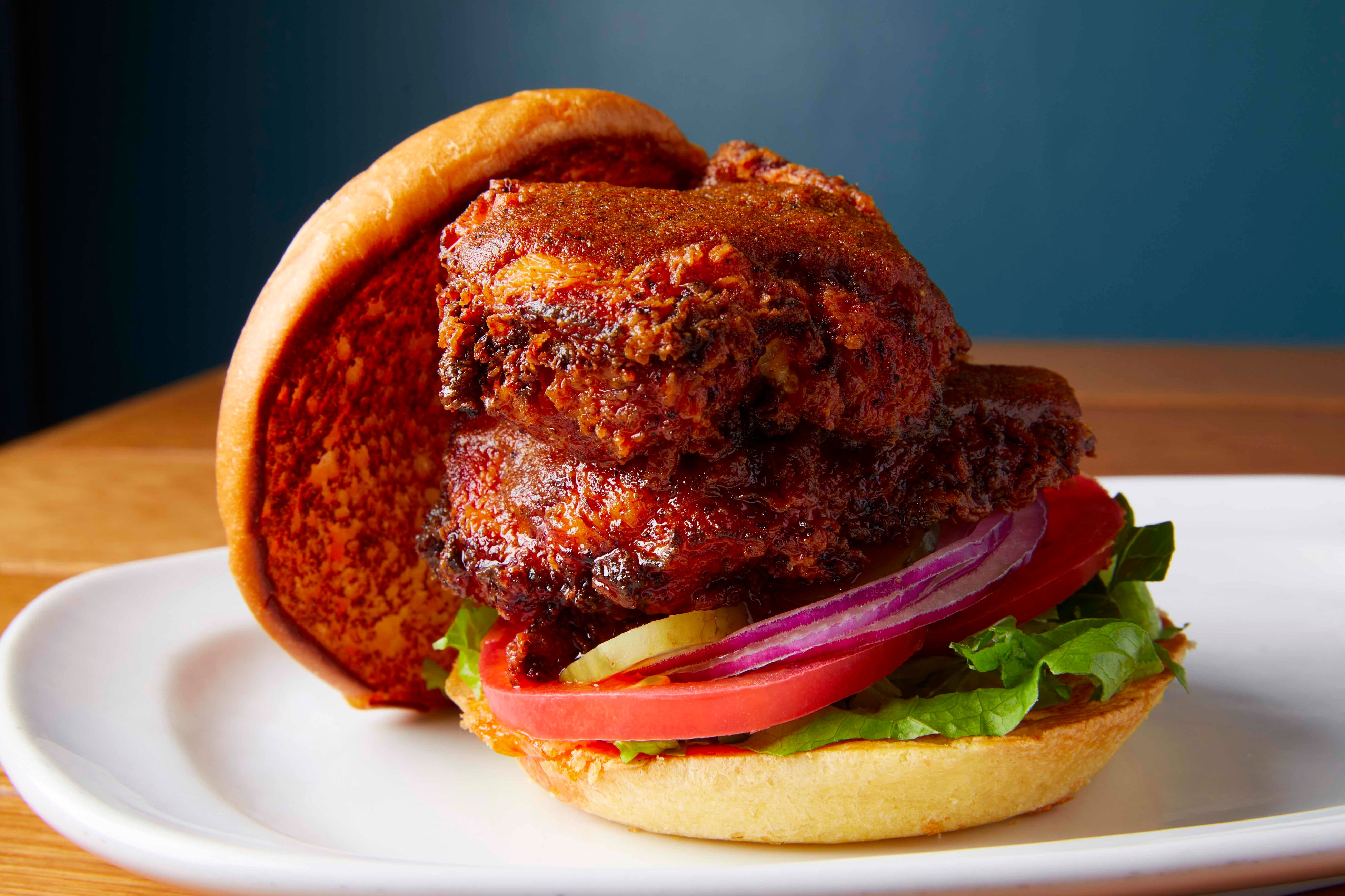 チリペッパーやガーリックなどでスパイシーに味付けしたアメリカ南部で大人気のフライドチキン「ナッシュビルホットチキン」をバーガーにアレンジ。味の決め手は、ハチミツとチリペッパーを使った甘辛ソース。止まらないおいしさの特製ソースです。