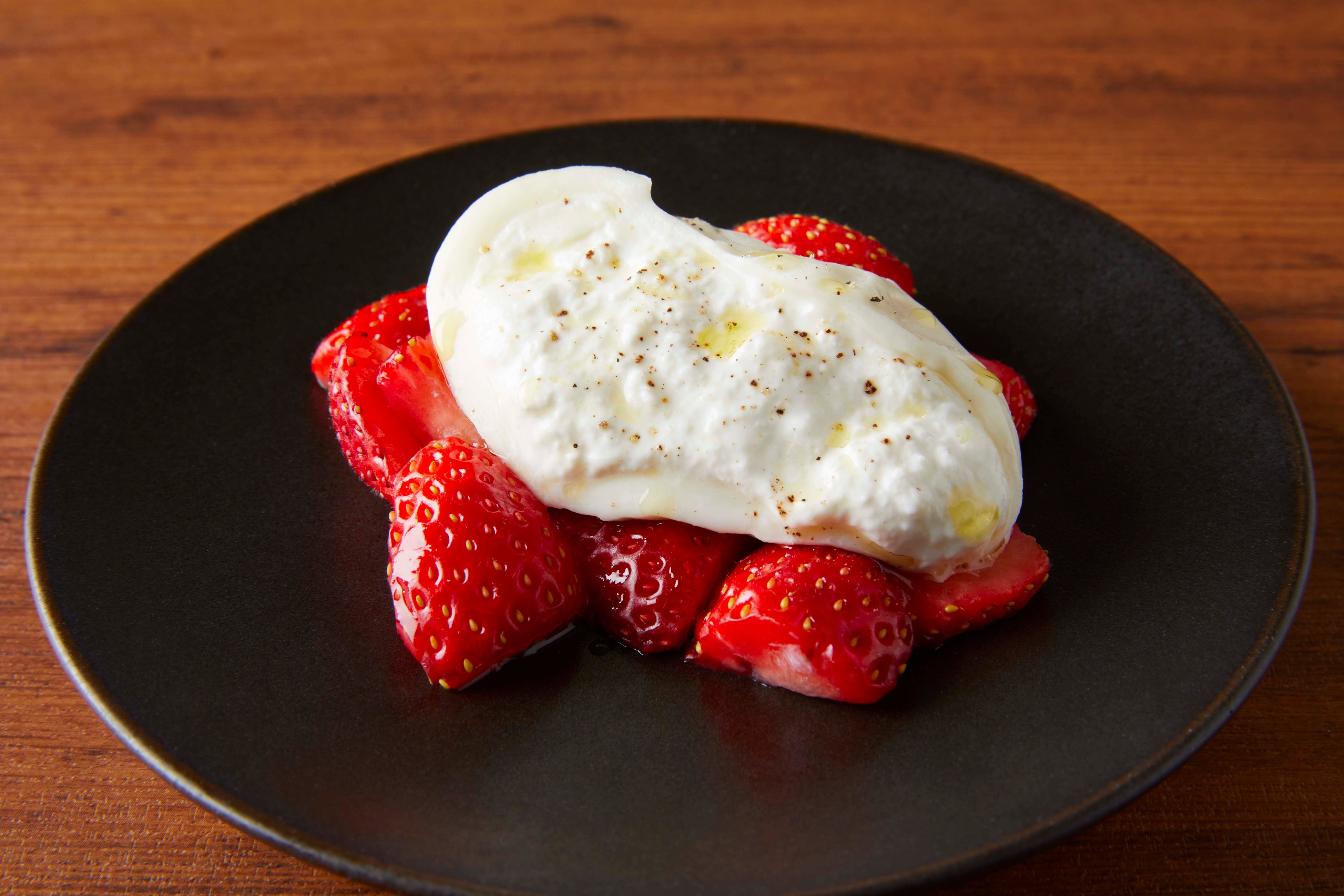 モッツァレラ専門店オービカからは、イタリア・プーリア産のブラータチーズと甘酸っぱいフレッシュないちごを組み合わせたカプレーゼ。水牛乳100%で作られた濃厚でミルキーなモッツァレラの味わいをシャンパーニュとともにお楽しみください。