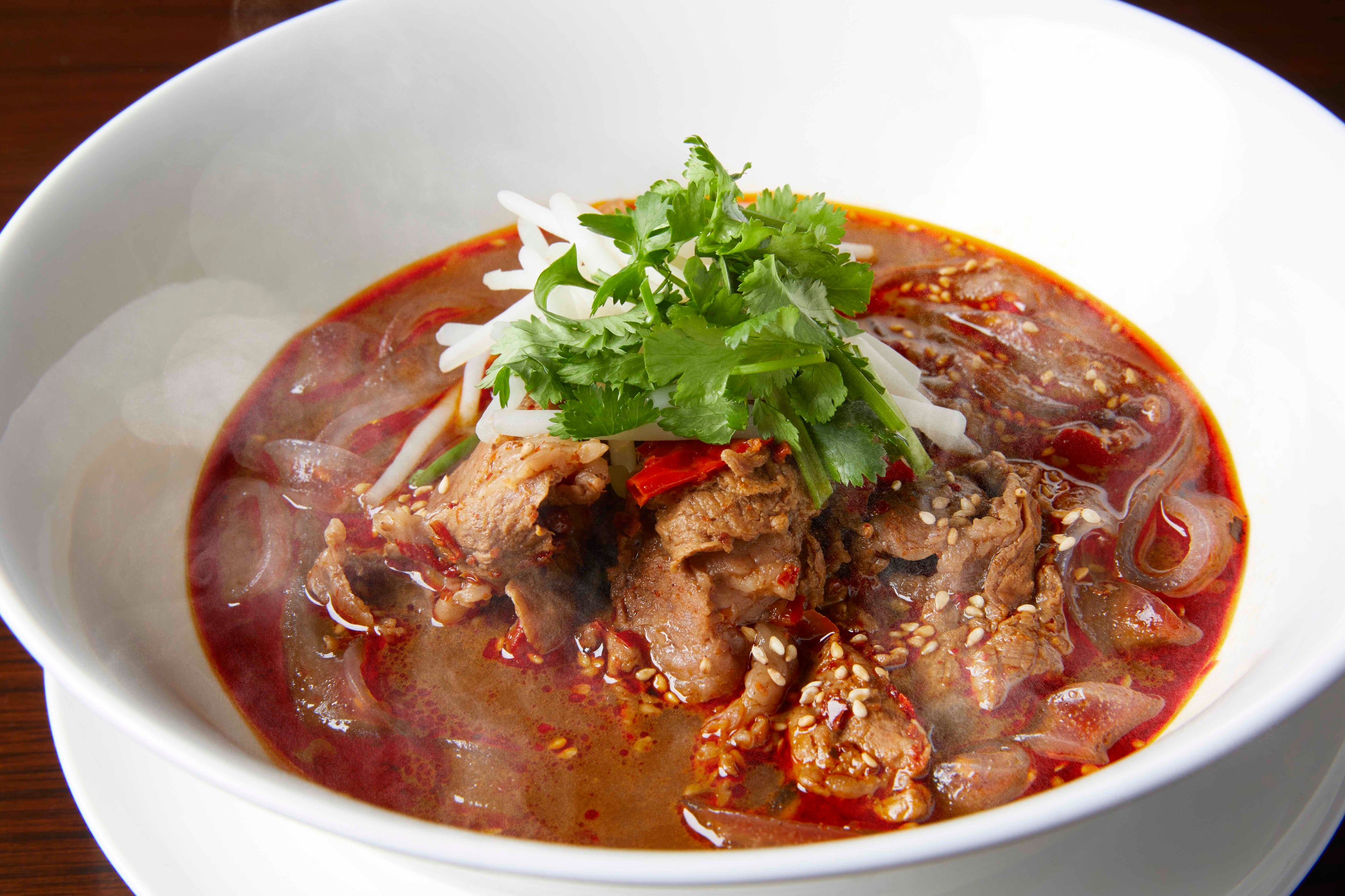 これぞ“旨辛”中華の決定版!八角や花椒が香る程よい辛さのスープに、柔らかな和牛すじ肉からコク深い旨味が溶け出します。もちもちした極太の春雨の食感も特筆。食べるほどに身体がポカポカしてくる、パンチがきいた奥行きのある味わいです。