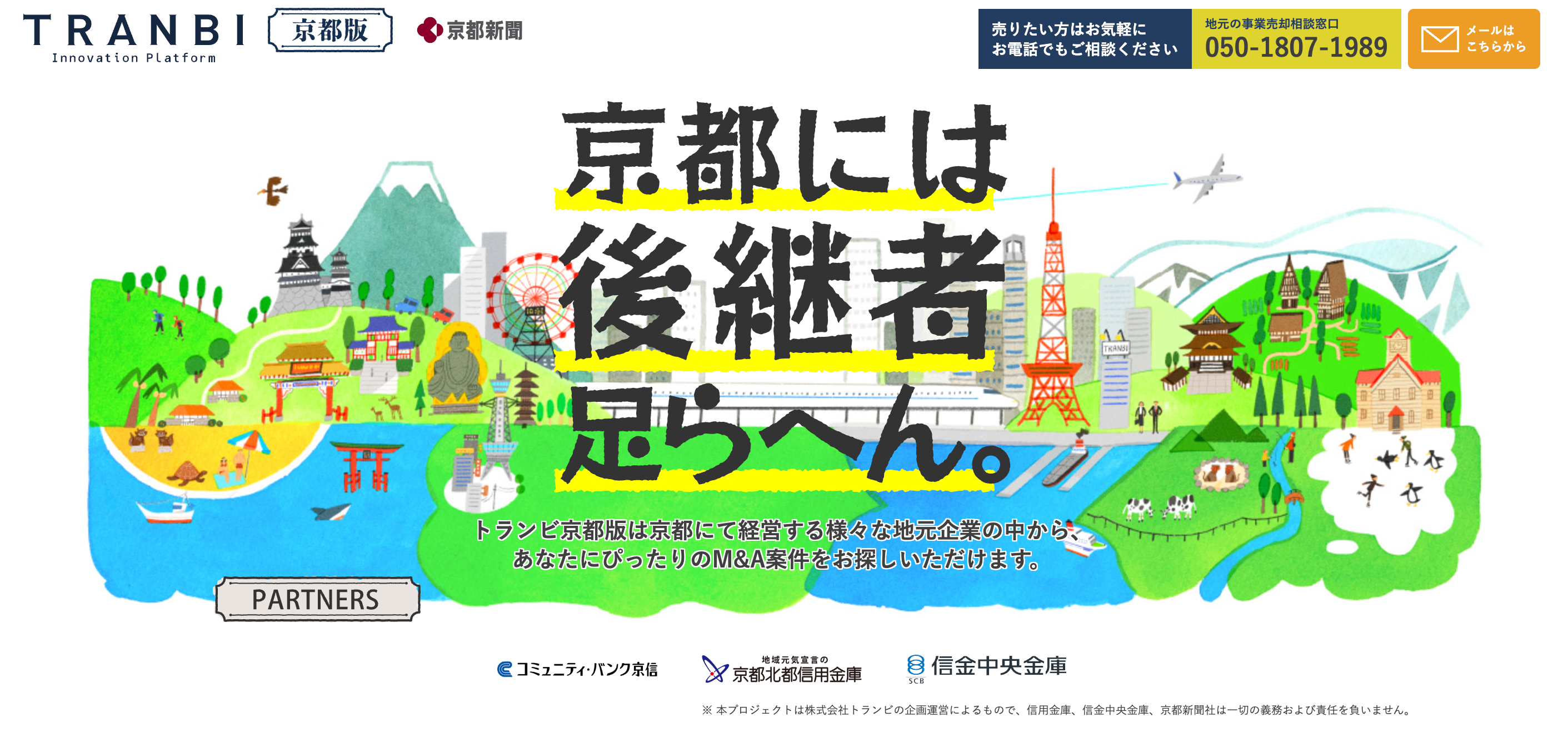 国内最大級の事業承継・M&AプラットフォームTRANBI(トランビ)、「地域版メディアプロジェクト」に京都新聞が参画