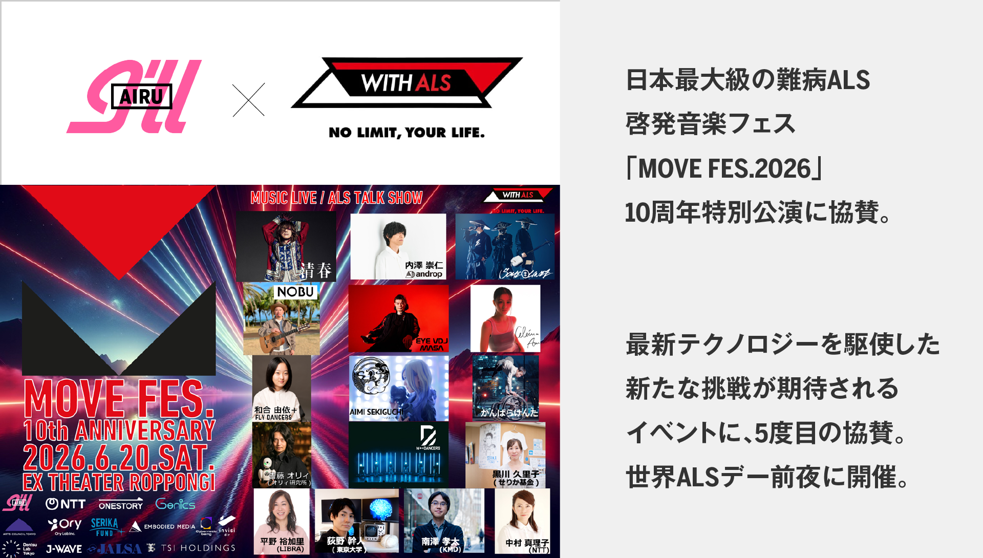 アイル、日本最大級の難病ALS啓発音楽フェス「MOVE FES.2026」10周年特別公演に協賛
