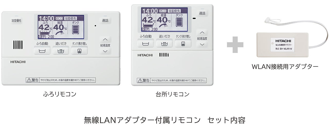 さらに、給湯専用(高効率)は「無線LANアダプター付属台所リモコン」を同梱しており、補助金の性能加算要件A要件の対象となります。フルオート標準タンク(高効率)については、WLAN接続用アダプターがセットになった新部品の「無線LANアダプター付属リモコン(別売) 」BHP-W2FH-Tをご購入いただくことで、補助金の性能加算要件A要件の対象となります。