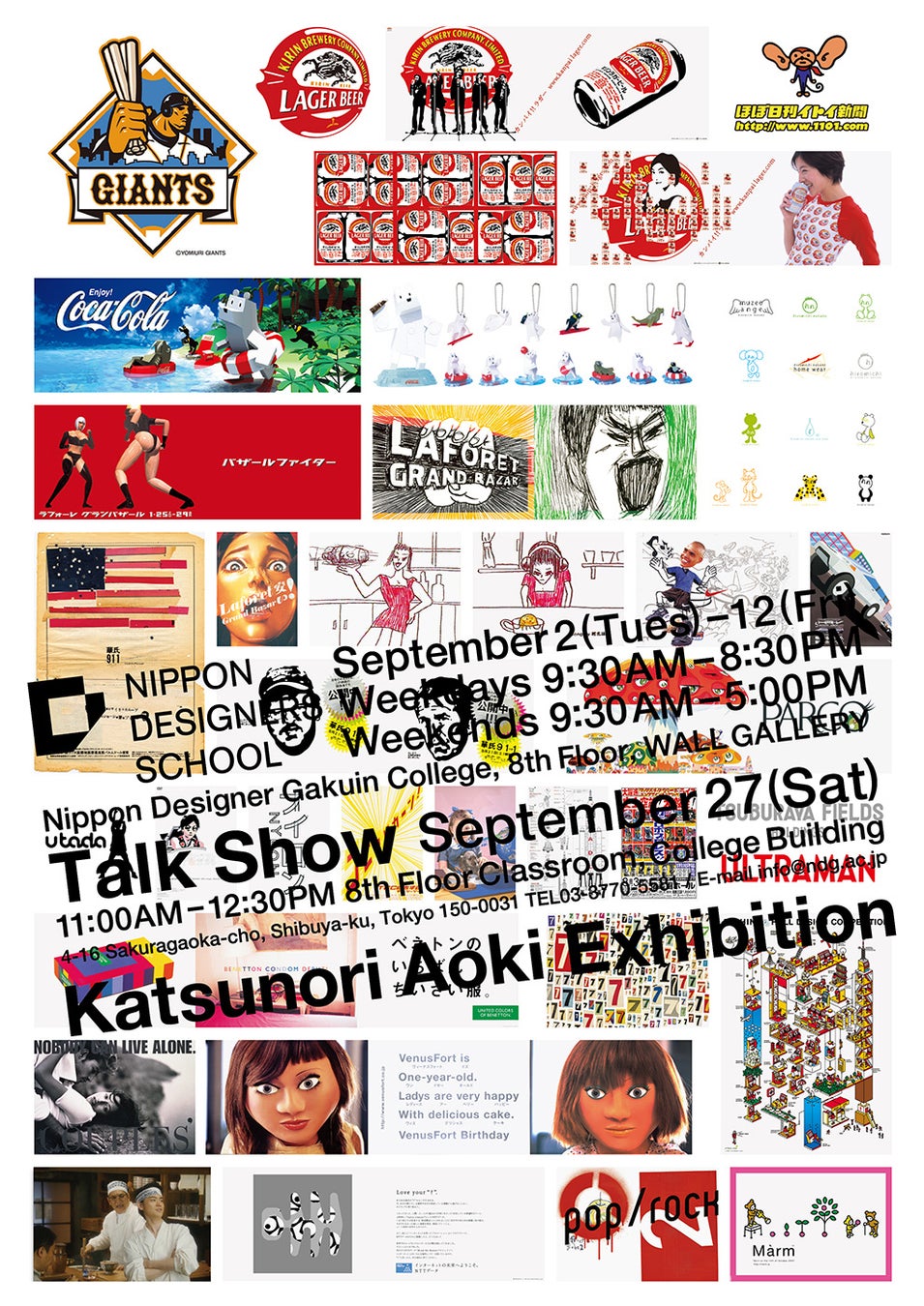 広告、グラフィック、映像、立体など様々なクリエイティブのディレクターとして活躍している青木克憲氏の展示会を9月2日(火)~12日(金)の期間で専門学校日本デザイナー学院(渋谷)で開催。