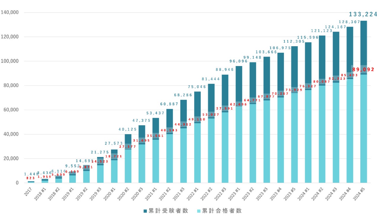 これにより、G検定の累計受験者数は133,224名、累計合格者数は89,092名になりました。
