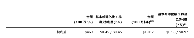 1. 当社は、GAAPに準拠して算出された財務指標に加えて、Non-GAAP財務指標を報告していますが、これらはGAAP財務指標の代替や、それを上回るものとして使用するものではありません。Non-GAAP指標の説明については、『Non-GAAP財務指標の使用に関する声明』セクションをご参照ください。
