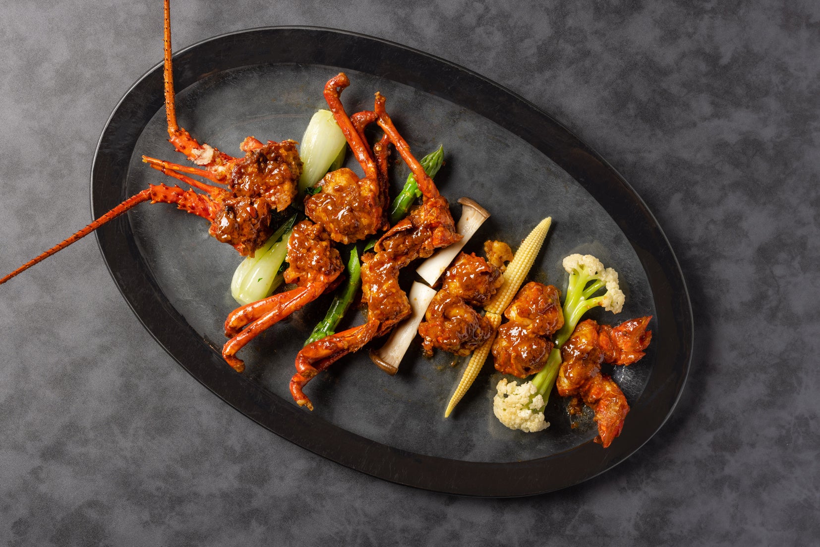 大きなサイズが迫力大の国産活け伊勢海老を、豆板醤や山椒でつくったレストランオリジナルの四川香辣醤で炒めています。通常より香り高く、辛くクセになる一品。