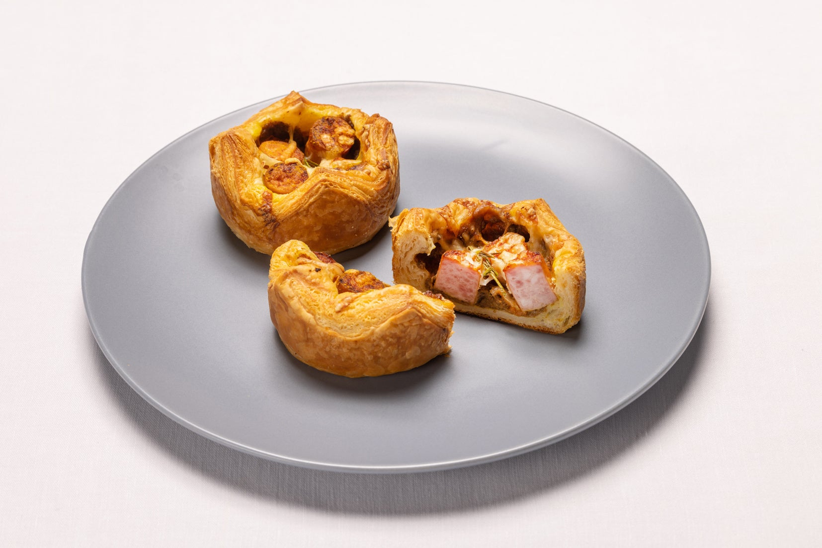 ソーセージと濃厚なチーズの入ったカレーをデニッシュ生地で包み、焼き上げました。サクサクのデニッシュの食感と、ジューシーなソーセージとコクのあるカレーがマッチし、お子様にも喜んでいただけるような一品です。