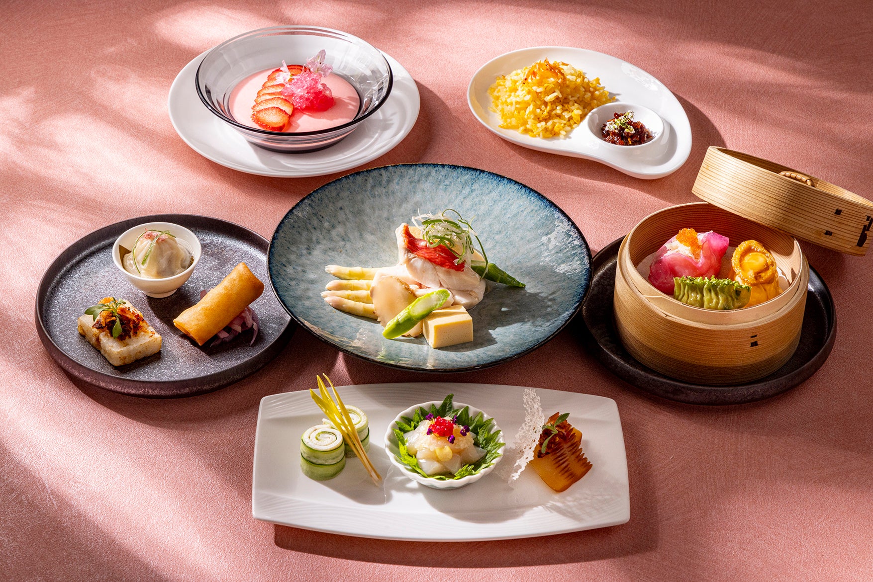 広東料理をベースにしたクリエイティブな料理が魅力の「チャイナブルー」では、6種の点心を中心に、コース仕立てでお届けする「点心ランチ」をご提供します。海鮮香る「蟹と海老餃子」や、鮑をトッピングし見た目も華やかな「鮑シュウマイ」など、彩り鮮やかな点心6種類をご堪能いただける上、メインには、上品な味わいの甘鯛に春野菜を添えた「甘鯛の蒸しにんにくソース」または、黒豆の香りがふくよかな「牛肉と春野菜の豆鼓炒め」の2種類からお選びいただけます。