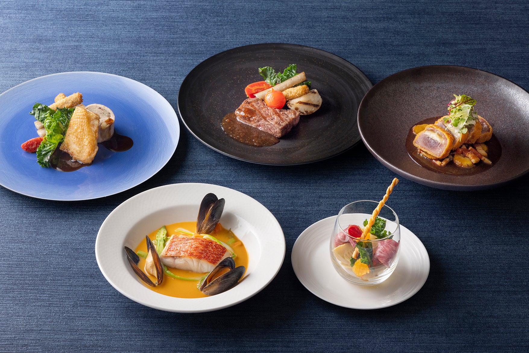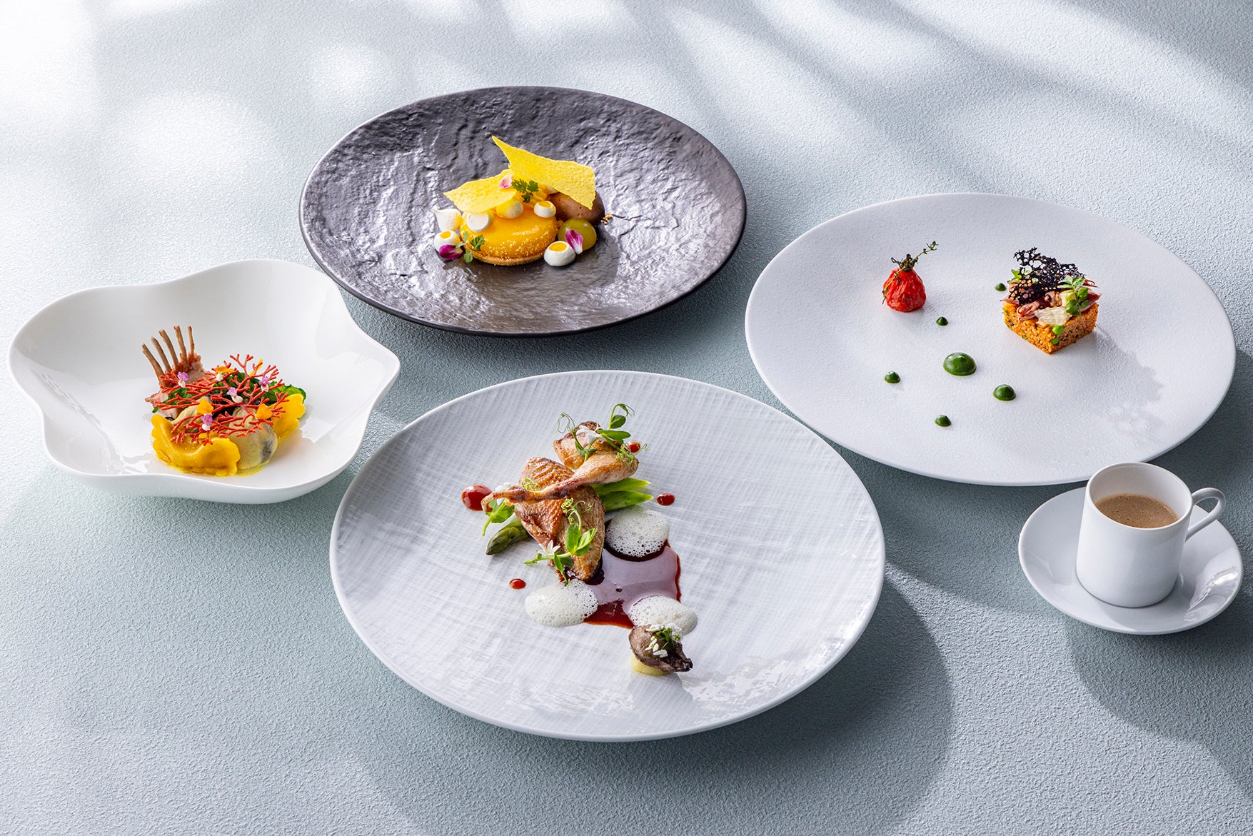 フレンチをベースにさまざまな国の技法を取り入れた新スタイルのモダンフレンチ「コラージュ」では、素材の持ち味を最大限に生かした季節のコースディナーをお届けします。「Pleasure (プレジャー)」では、新鮮な状態で仕入れた富山県産のホタルイカや、埼玉県産のウズラ肉、収穫後30分以内に冷却したフレッシュな香川県産神経締めグリーンアスパラなど国産の厳選食材に加え、フランス産のラパン(うさぎ肉)やキャビアなどフレンチに欠かせない食材を使用した、シェフこだわりのメニューをご用意します。デザートは、酸味がまろやかな瀬戸内レモンを使用した口どけなめらかな「瀬戸内レモンのタルトレット パッションフルーツ プラリネ」が、爽やかにコースを締めくくります。