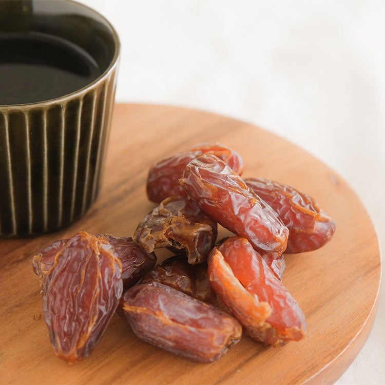 厚い果肉のねっとりなめらかな食感と、干し柿や黒糖のように濃厚なこく、そしてあとに残らない自然な甘みが特徴的なデーツ。砂漠からやってきた王様のフルーツです。