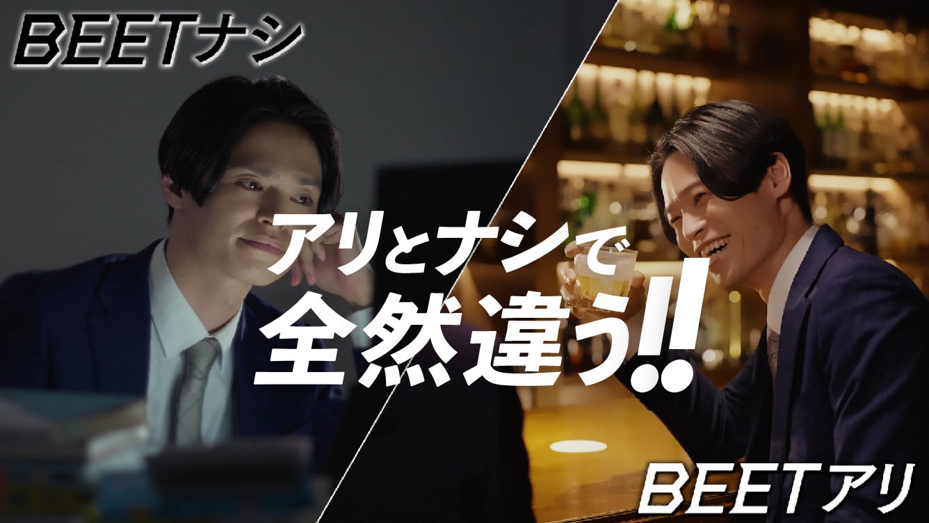 CMでは、「BEET」を活用してキャリア形成を実現した男性と、そうではない男性の1日を比較した内容となっており、「管理部門が評価される企業への転職なら、BEET」というメッセージを打ち出しています。