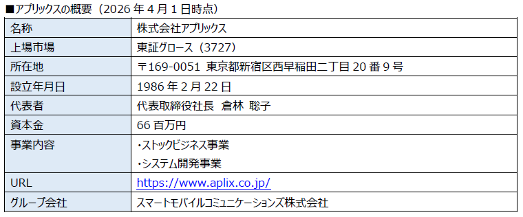 株式会社グローバルキャスト(本社:愛知県名古屋市中村区、代表取締役社長:川口 英幸、以下「当社」)は、株式会社アプリックス(東京証券取引所グロース市場上場 証券コード:3727、本社:東京都新宿区、代表取締役社長:倉林 聡子、以下「アプリックス」)との経営統合を前提とした、当社を株式交換完全子会社とする株式交換を行い、2026年4月1日より新たな企業グループとして始動いたします。