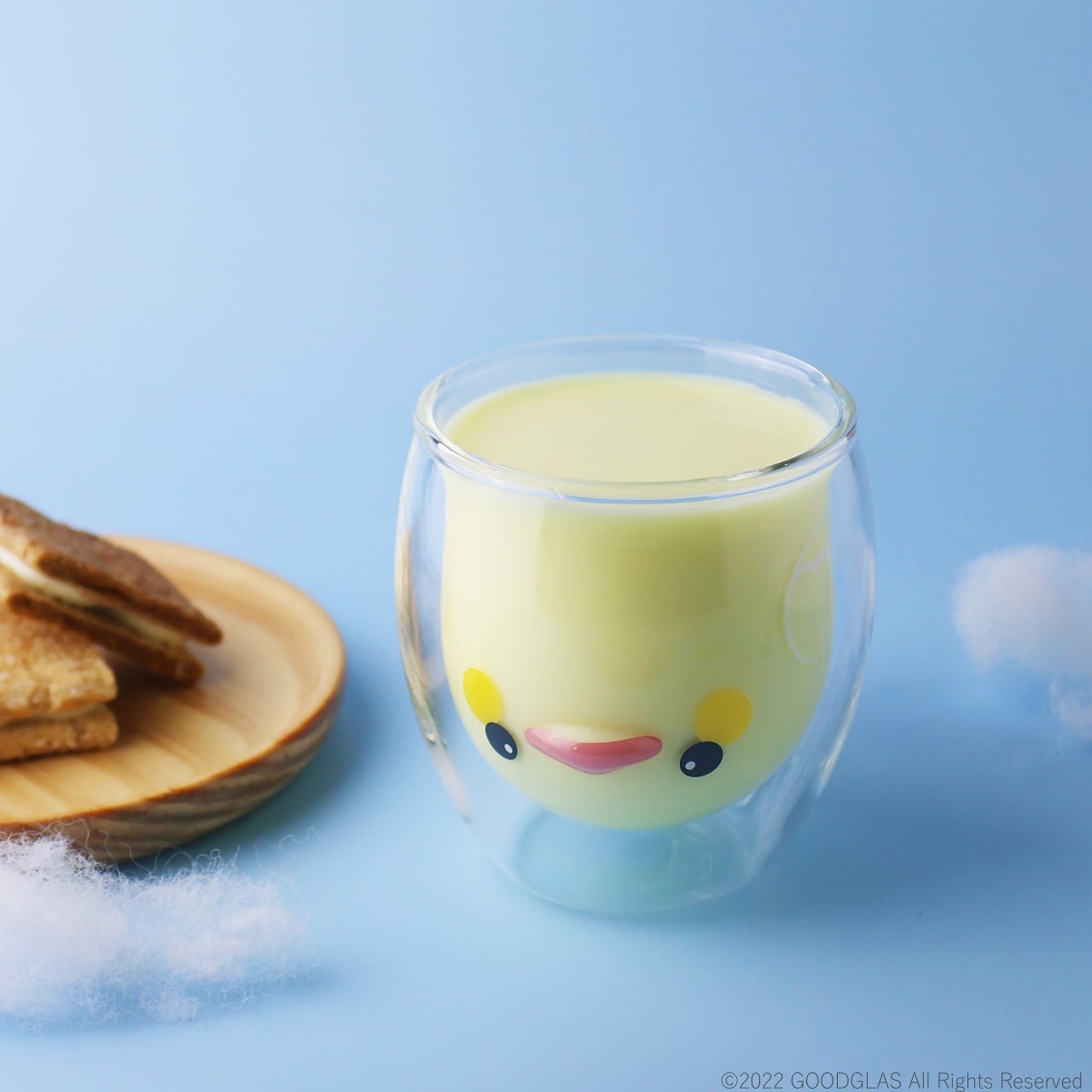 グッドグラスの二層構造グラスは、内側の層に動物やキャラクターがデザインされており、飲み物を注ぐとそのデザインがよりはっきりと浮かび上がる、なんとも可愛いグラスです。注ぐ飲み物によって雰囲気が変化するのも、楽しいポイントの一つです。