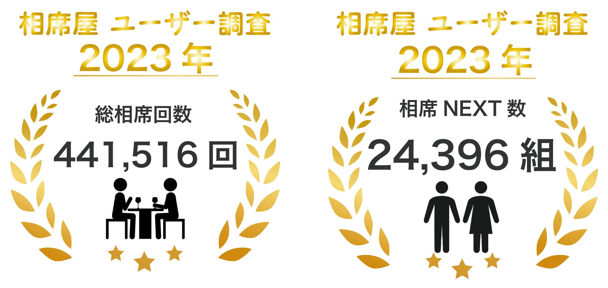 2023年9月の相席屋は、総相席回数441,516回、総同時退店数24,396組を突破いたしました。(2021年度〜2023年9月までの合計数)