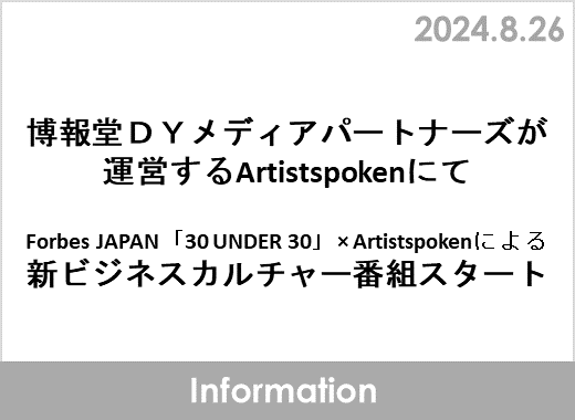 博報堂DYメディアパートナーズが運営するArtistspokenにてForbes JAPAN「30 UNDER 30」×Artistspokenによる新ビジネスカルチャー番組スタート