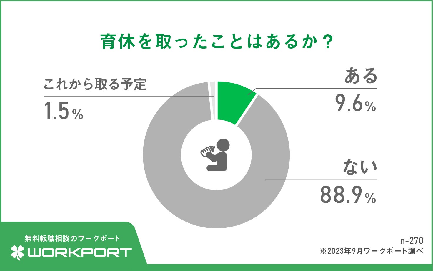 【育休取得経験】育休を取ったことがある男性は9.6%と少数 約9割の男性が取得経験なし