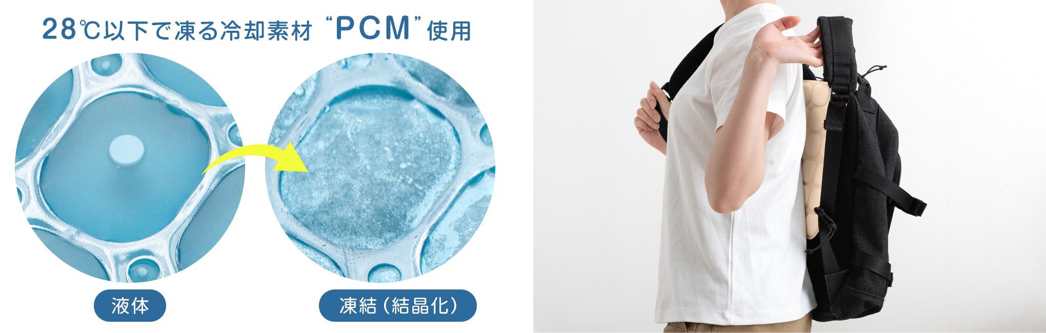 冷蔵庫不要の冷却素材“PCM”使用「リュック用冷感パッド」の詳細については下記にて説明いたします。