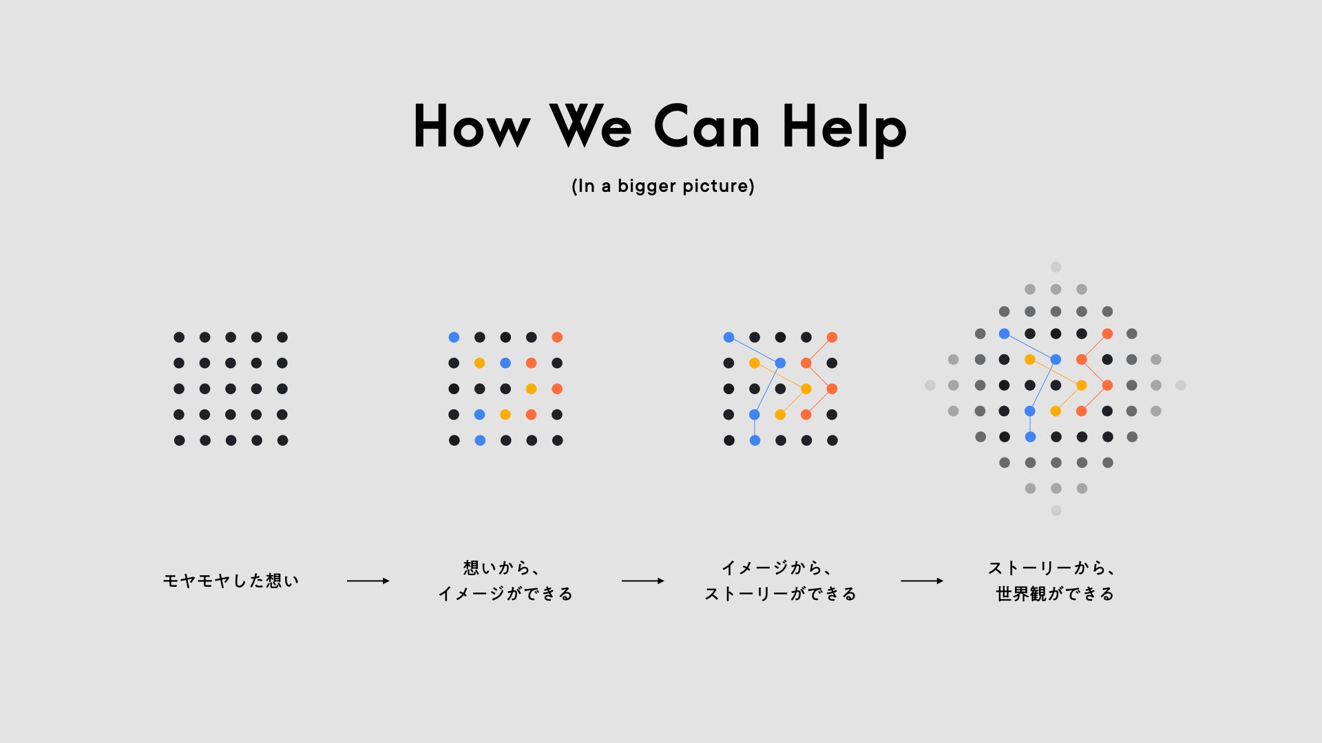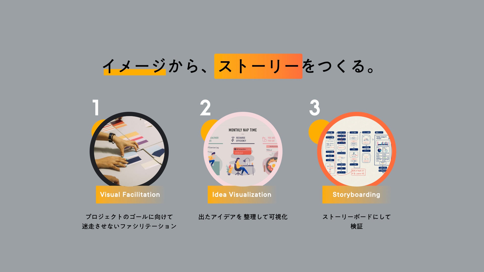 まだ見ぬ価値を創造するビジネスにおいて、想いの伝達は重要です。「想いが伝わらない」「想いを行動に移せない」「想いが引き継がれない」などのコミュニケーション課題を、ビジュアルを通じた共創で解決へ導きます。ビジュアルの持つ機能は、見えなかった想いを可視化し、共感を生み、更には他者を巻き込んで行動を引き出すこともできます。創業以来40年以上にわたり、ビジュアルコミュニケーションで培ってきたアマナの豊かなナレッジから、さまざまなビジュアルを用いた共創と施策を提供します。