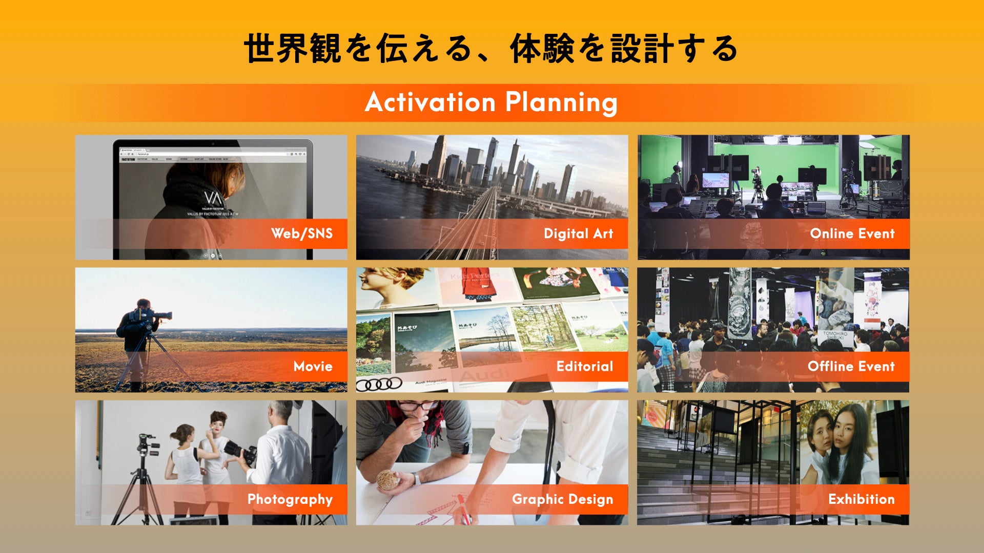 事業内容 : ビジュアルコミュニケーション事業(コミュニケーション領域における戦略・企画立案、ブランドデザイン&アクティベーション、インナーコミュニケーション、コンテンツマーケティング、コンテンツ制作・編集、プロトタイピング、ムービー/グラフィック制作、WEB制作、その他各種プロモーション施策の立案など)