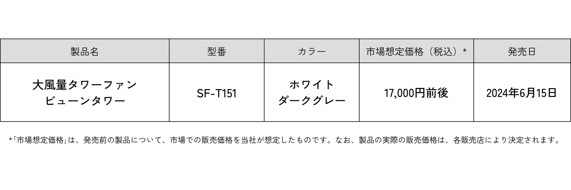 シロカ株式会社(東京都・千代田区)は、独自技術によるパワフルかつ質の高い心地よい風と、お手入れ簡単な取り外せるファンが特長の「大風量タワーファン ビューンタワー」を2024年6月15日に発売します。