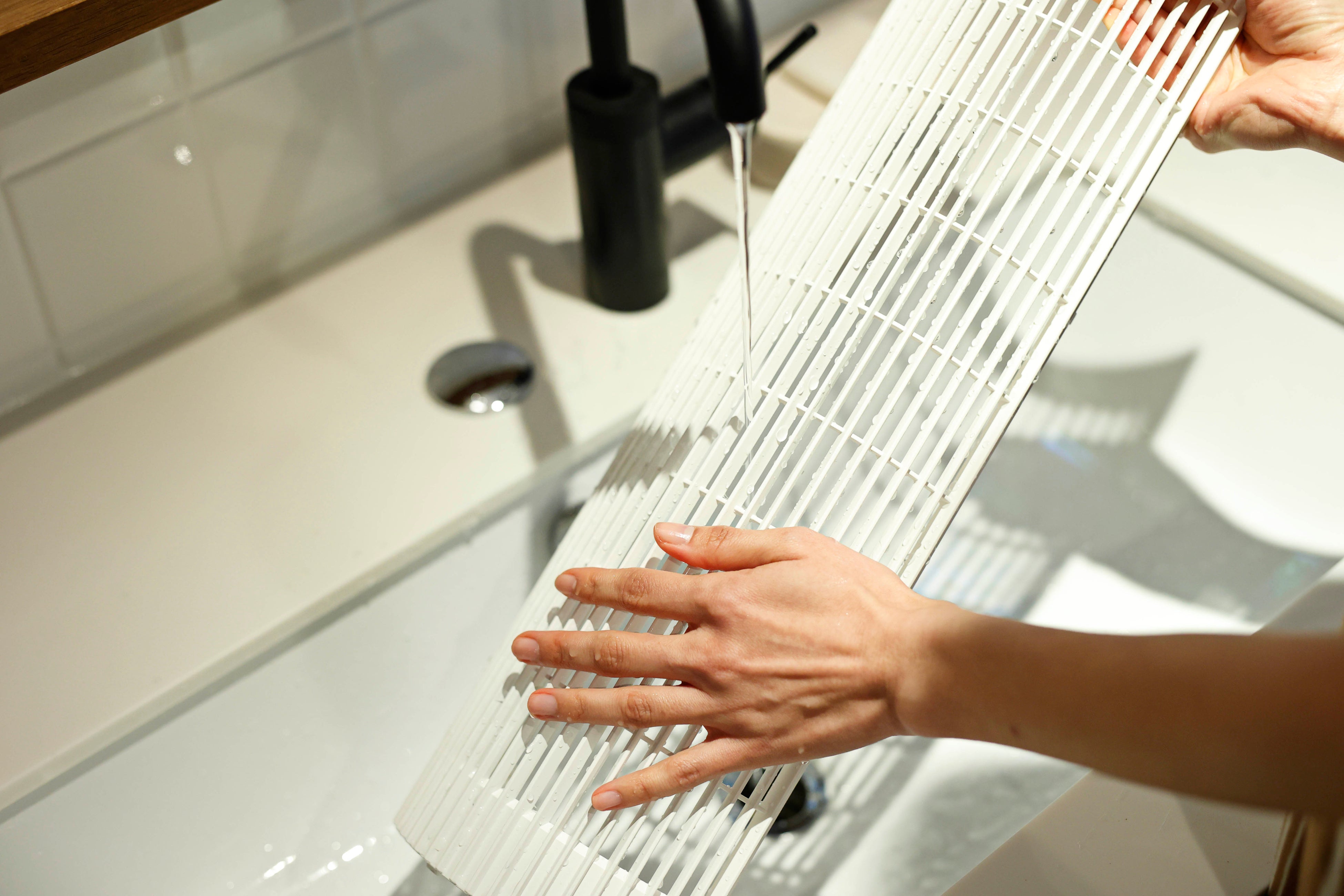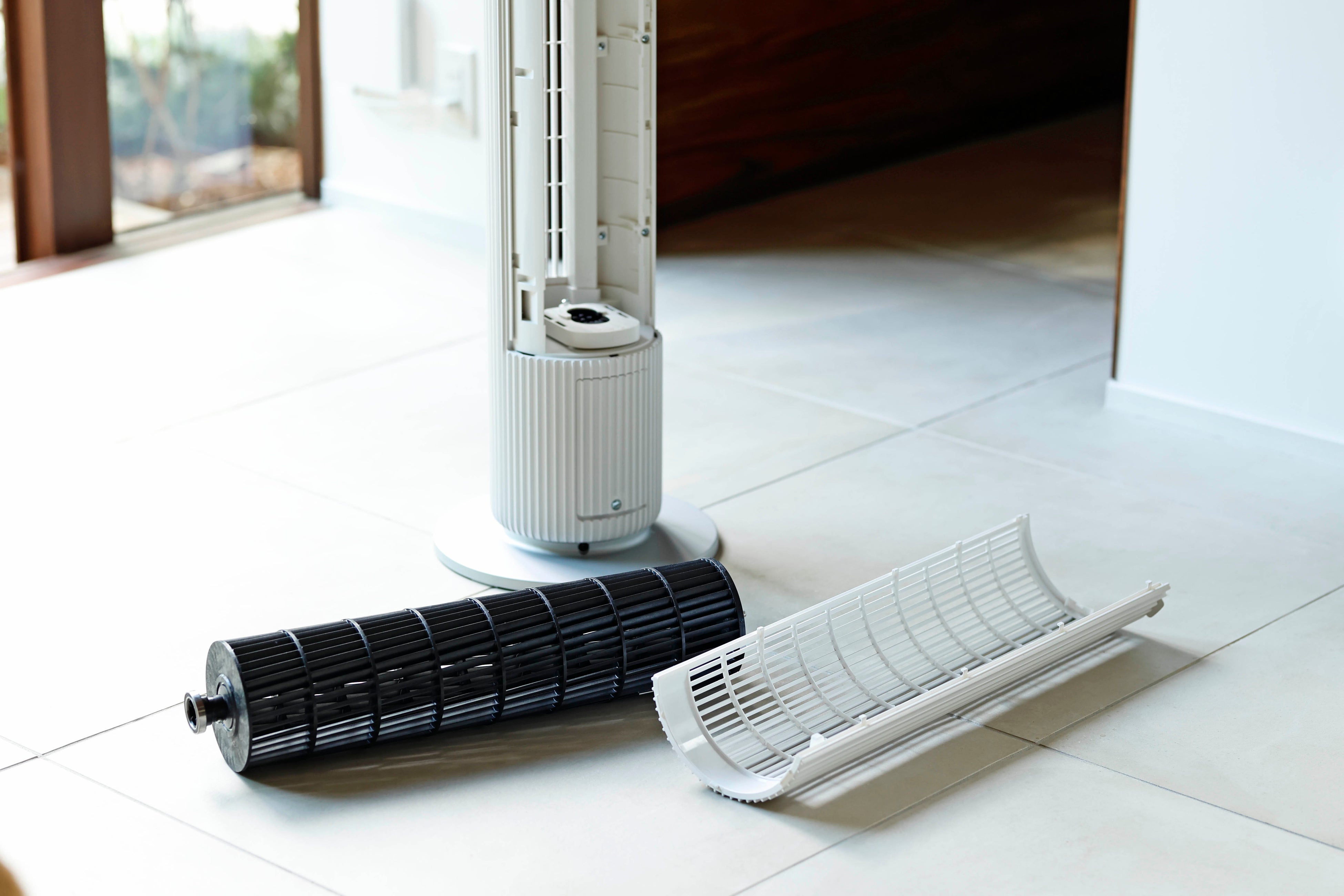 風を取り込んで送風するため、ほこりなどの汚れが気になりがちなタワーファン。タワーファンは本体を分解できないものが多く、ファンを直接掃除するのが困難な場合もありますが、シロカの「ビューンタワー」は本体カバーとファンを簡単に取り外すことが可能。さらに取り外した本体カバーとファンは水で丸洗い*2できるため、汚れが気になるときにサッとお手入れができ、いつでも清潔にお使いいただけます。