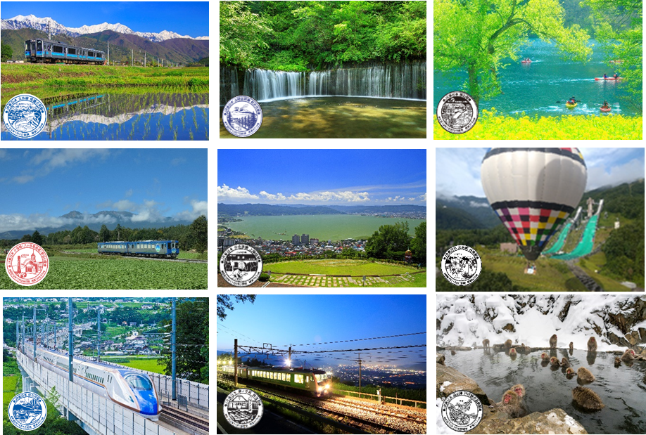 小淵沢駅(中央本線・小海線)、松本駅(大糸線・篠ノ井線)、長野駅(信越本線・北陸新幹線)、佐久平駅(小海線・北陸新幹線)、飯山駅(飯山線・北陸新幹線)