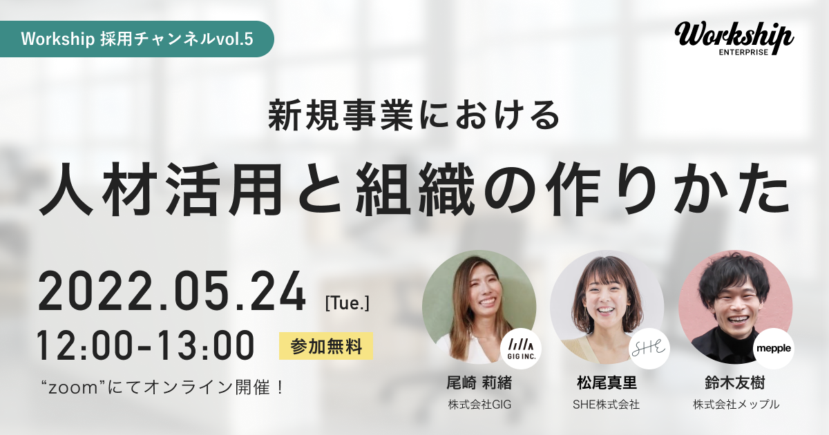 【ウェビナー開催】【Workship採用チャンネルvol.5】新規事業における人材活用と組織の作りかた