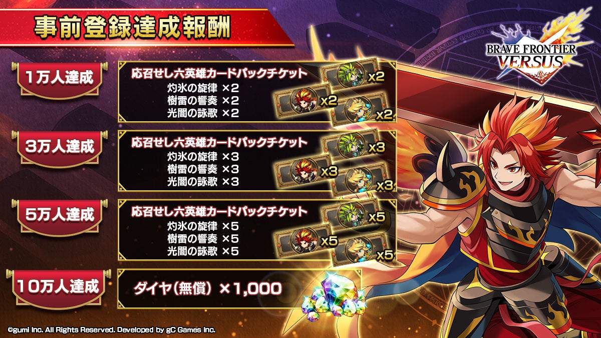 株式会社gumi(本社:東京都新宿区、代表取締役社長:川本 寛之)は、全世界累計3,800万ダウンロードを突破したスマートフォン向け本格RPG『ブレイブ フロンティア』シリーズの最新作となるアプリゲーム『BRAVE FRONTIER VERSUS』の事前登録を開始したことを発表いたします。
