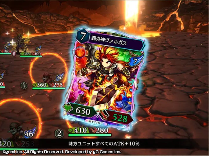 バトルの流れを大きく左右する本タイトル独自のシステムです。中盤(3ターン目)と終盤(5ターン目)に、ステータスとスキルが大幅に強化された「降臨ユニット」が自動でドローされます。派手な登場演出とともに、一気に戦局を有利に進めることが可能!