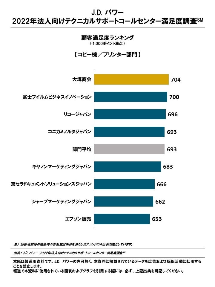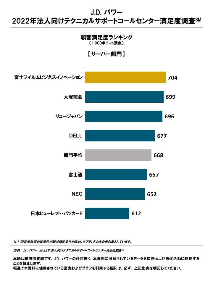 (本社:東京都港区、代表取締役社長:山本浩二、略称:J.D. パワー)は、J.D. パワー 2022年法人向けテクニカルサポートコールセンター満足度調査℠の結果を発表した。本調査は「サーバー」、「PC/タブレット」、「コピー機/プリンター」、「業務ソフト」の4つのIT製品部門における、企業向けのテクニカルサポートコールセンターの満足度を測定している。