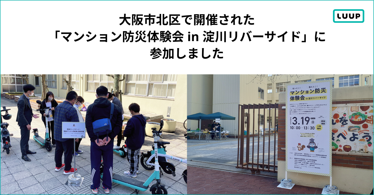 株式会社Luup(本社:東京都千代田区、代表取締役社長兼CEO:岡井大輝、以下「Luup」)は、3月19日(日)に大阪市北区で開催された「マンション防災体験会 in 淀川リバーサイド」に参加し、電動キックボードと電動アシスト自転車の試乗体験を実施したことをお知らせします。
