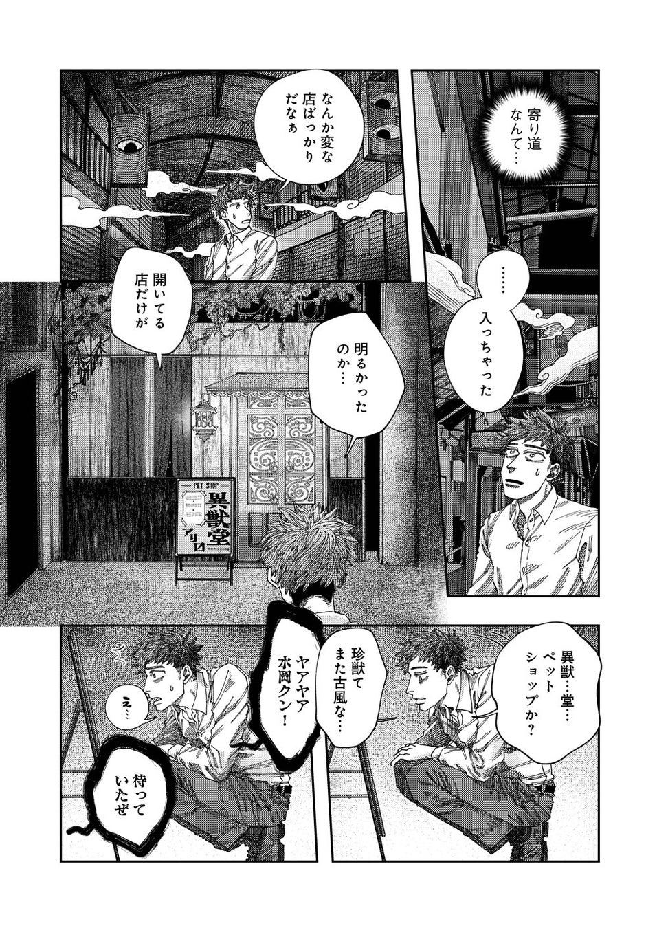 路地の奥にひっそりと佇む異獣堂に今日も叶えられぬ心の渇きを抱えた人間が引き寄せられる。異獣はその渇きを癒すのか? それとも……。